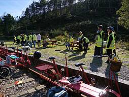 Das Highlight des Tages war jedoch sicherlich unsere Draisinenfahrt auf der alten Bahnlinie. Dabei ging es am Fjord entlang über einige Brücken und durch zahlreiche Tunnels, an Wasserfällen vorbei zum höchsten Punkt, 88 m über dem Meerespiegel, was ein ausgiebigeres Picknick unvermeidbar machte. Mit einer Koalition der Willigen fuhren zwei Lehrkräfte anschließend noch etwas weiter an einem See entlang, während die müderen Teams noch etwas ausruhten um die deutlich leichtere und schnellere Rückfahrt anzutreten.