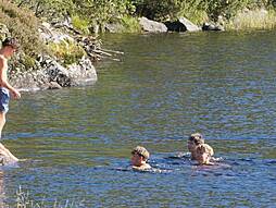 Der Dienstagvormittag stand unter dem Vorzeichen des Kennenlernens von Flekkefjord. Unter Führung von Flekkefjorder Schülerinnen und Schüler gingen wir auf „Headhunting“ in der Stadt und lernten so einiges über die Stadt, Streetart und wichtige Persönlichkeiten. Und da die Sonne Überstunden machte, fuhren wir zurück zum See der mit seinen coolen 11°C zum Baden und Kanufahren einlud.