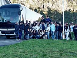 Selten freudig gingen 19 Schüler und Schülerinnnen der J1 am Samstag 20.9. zur Schule, denn statt Unterricht stand eine 24-stündige Busfahrt nach Flekkefjord in Norwegen auf dem Programm. Am Busparkplatz warteten auch schon der Bus sowie 20 Schüler und Schülerinnen mit ihren Lehrkräfte aus dem Lycée Le Corbusier in Illkirch. Die unseren, Frau Nehring und Herr Langenberger standen auch bereit. Wir kannten uns schon einigermaßen vom ersten Zusammentreffen, als die Flekkefjorder im März bei uns zu Gast waren.