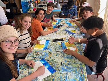 Gemeinsam mit unseren französischen Austauschpartner:innen ging es außerdem nach Auvers-sur-Oise, wo wir den Spuren Van Goghs folgten und in einem Malatelier selbst kreativ wurden.