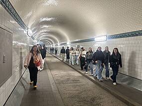 Der Alte Elbtunnel, die Elbphilharmonie und das Internationale Maritime Museum Am dritten Tag setzten wir unsere Erkundung der Stadt fort. Zunächst besuchten wir den Alten Elbtunnel, eines der ältesten Tunnelbauwerke der Welt. Nachdem wir den Tunnel durchquert hatten, bot sich uns von Steinwerder ein spektakulärer Blick auf die Hamburger Skyline. Der Anblick der Stadt aus dieser Perspektive war einfach unvergesslich. Anschließend ging es zur beeindruckenden Elbphilharmonie, deren außergewöhnliche Architektur sofort ins Auge fiel. Das Gebäude, das sich harmonisch in die Umgebung einfügt, ist ein wahres Meisterwerk der modernen Baukunst und eine der bekanntesten Sehenswürdigkeiten Hamburgs. Im Internationalen Maritimen Museum lernten wir viel über die Geschichte Hamburgs als Hafenstadt und seine maritime Bedeutung. Eine aufschlussreiche Führung führte uns durch die verschiedenen Ausstellungen und zeigte uns, wie sehr der Hafen und die Schifffahrt das Leben in Hamburg prägten. Den Abschluss des Tages bildete eine Stadtführung zu Fuß, bei der wir unter anderem den Michel, die berühmte St. Michaelis Kirche, und das Portugiesenviertel passierten. Wir erfuhren interessante Geschichten über Hamburgs Geschichte und die Bedeutung dieser Viertel. Zum krönenden Abschluss genossen wir ein gemeinsames Abendessen in einem koreanischen Restaurant, das den Tag mit einer kulinarischen Reise abrundete.