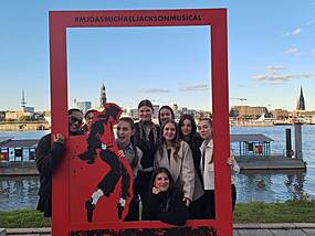 Hafenrundfahrt, NDR und Michael Jackson Musical Der zweite Tag begann mit einer spannenden Hafenrundfahrt an den berühmten Landungsbrücken. Während der Fahrt erhielten wir interessante Informationen über den Hamburger Hafen, die mächtigen Kräne und die historischen Docks. Besonders faszinierend war der erste Blick auf die Speicherstadt, ein UNESCO-Weltkulturerbe, das mit seinen Backsteingebäuden und Kanälen ein einzigartiges Bild von Hamburg vermittelt. Anschließend ging es weiter zum Isemarkt, einem der längsten Straßenmärkte Europas, der für seine bunte Mischung aus kulinarischen Köstlichkeiten und allerlei Ständen bekannt ist. Hier stärkten sich alle bei regionalen Spezialitäten und genossen das lebendige Marktgeschehen. Nach dieser leiblichen Verstärkung machten wir uns auf den Weg zu den NDR-Studios, wo uns ein spannender Einblick in die Welt der Medienproduktion geboten wurde. Wir erfuhren viel über die Organisation und Planung von Sendungen wie "Das! Rote Sofa", "NDR Talkshow" und "NDR Info". Besonders beeindruckend war die Arbeit hinter den Kulissen – von der Regie über die Technik bis hin zur zeitgenauen Planung von Sendungen. Ein klarer Eindruck wurde vermittelt: Gute Fernseh- und Radioproduktionen benötigen vor allem eines: perfekte Teamarbeit und präzise Organisation. Am Abend hieß es dann "Feiern mit Michael Jackson"! Wir machten uns schick und fuhren mit der Fähre zum imposanten Musicalgebäude, das sich schon von außen als imposante Kulisse präsentierte. Die atemberaubende Bühnenshow des Michael Jackson Musicals war ein echtes Highlight: Tänzer, Sänger und ein beeindruckendes Licht- und Sounddesign ließen uns das Gefühl erleben, bei einem echten Konzert von "King of Pop" zu sein. Die Begeisterung war spürbar, und viele Schüler:innen waren nach der Show voller Eindrücke und Emotionen. Nach diesem ereignisreichen Tag kehrten wir zurück ins Hostel, wo der zweite Tag unserer Studienfahrt einen unvergesslichen Abschluss fand.