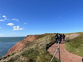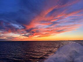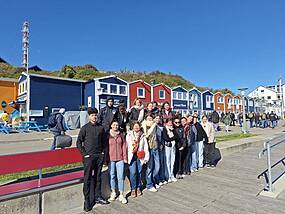 Auf nach Helgoland Am Donnerstag ging es dann mit dem Katamaran Halunder Jet auf die einzige Hochseeinsel Deutschlands: Helgoland. Nach einer 3,5-stündigen Fahrt erreichten wir die kleine Insel, die sich durch ihre roten Felsen und ihre besondere Landschaft auszeichnete. Begrüßt wurden wir von den Hummerbuden, den bunten Häusern der Inselbewohner, die den Charme des Ortes ausmachen. Bei strahlend blauem Himmel und Sonnenschein – das Wetter begleitete uns die gesamte Woche über – erkundeten wir Helgoland mit einem Inselbewohner als Führer. Er erzählte uns viel über das Inselleben, das für viele erst nach einem Winter auf der Insel wirklich zu verstehen ist, da die Isolation in den kalten Monaten zu einer echten Herausforderung werden kann. Die Insel hat jedoch auch viele Freizeitangebote wie kostenlose Open-Air-Kinovorführungen und Strandyoga, die den Alltag auf der Insel bereichern. Die Geschichte von Helgoland ist ebenso faszinierend: Die Insel war zunächst dänisch, ging dann an Deutschland und wurde während des Zweiten Weltkriegs von Großbritannien besetzt. 1947 versuchte Großbritannien mit der größten nicht-nuklearen Explosion der Geschichte, Helgoland zu zerstören und von der Landkarte zu löschen – ein Vorhaben, das jedoch scheiterte, bevor die Insel wieder an Deutschland übergeben wurde. Wir bewunderten die einzigartige Nordseelandschaft, die Düne und die markante Felsformation "Lange Anna". Vor der Abreise nutzten wir die Gelegenheit für einen kleinen Bummel durch die zollfreien Geschäfte und fuhren dann zurück nach Hamburg. Der stärkere Wellengang machte die Rückfahrt zunächst etwas holprig und sorgte bei manchen für leichte Übelkeit. Doch als der atemberaubende Sonnenuntergang den Himmel in leuchtenden Farben erstrahlen ließ, war die Übelkeit schnell vergessen. Der magische Moment verzauberte uns alle und sorgte dafür, dass wir den Rest der Fahrt in vollen Zügen genießen konnten.